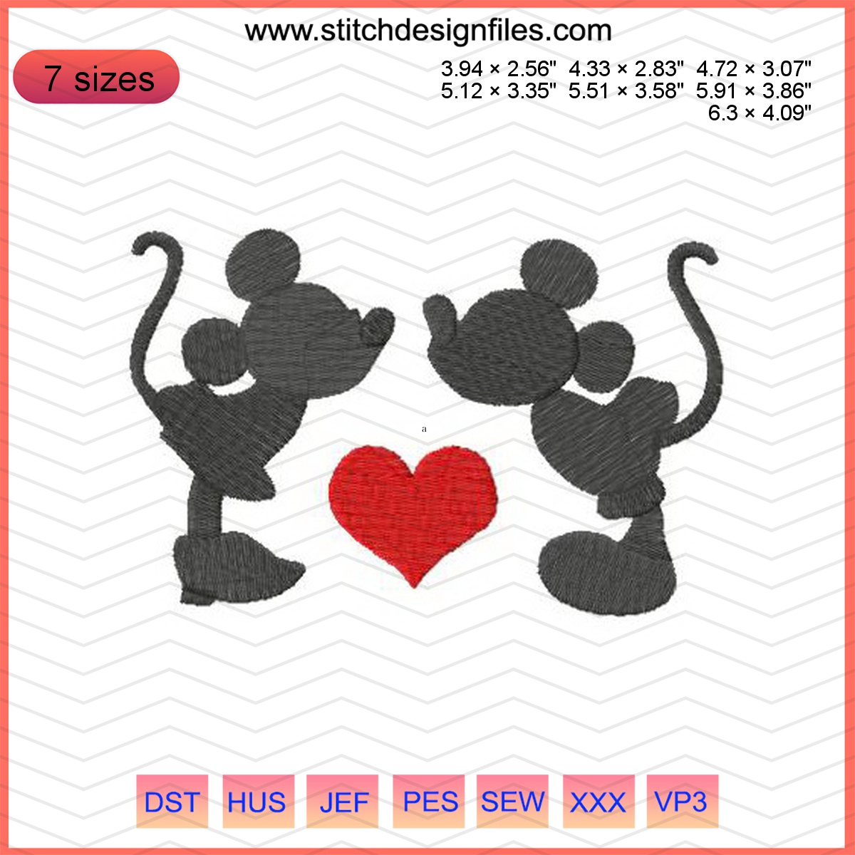 Indulge in the whimsical charm of our First Kiss embroidery design, a heartwarming silhouette capturing a moment of love. Inspired by the beloved Disney motif, this embroidery design features Mickey and Minnie, making it an ideal choice for romantic projects or gifts that celebrate affection.