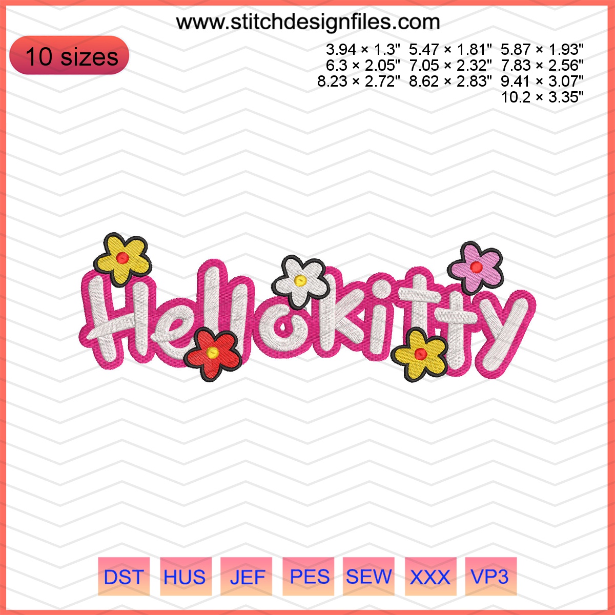 Indulge in this adorable Hello Kitty logo design that combines the iconic feline with a delightful array of flowers. This embroidery pattern is perfect for adding a touch of kawaii charm and floral vibrancy to your sewing projects.