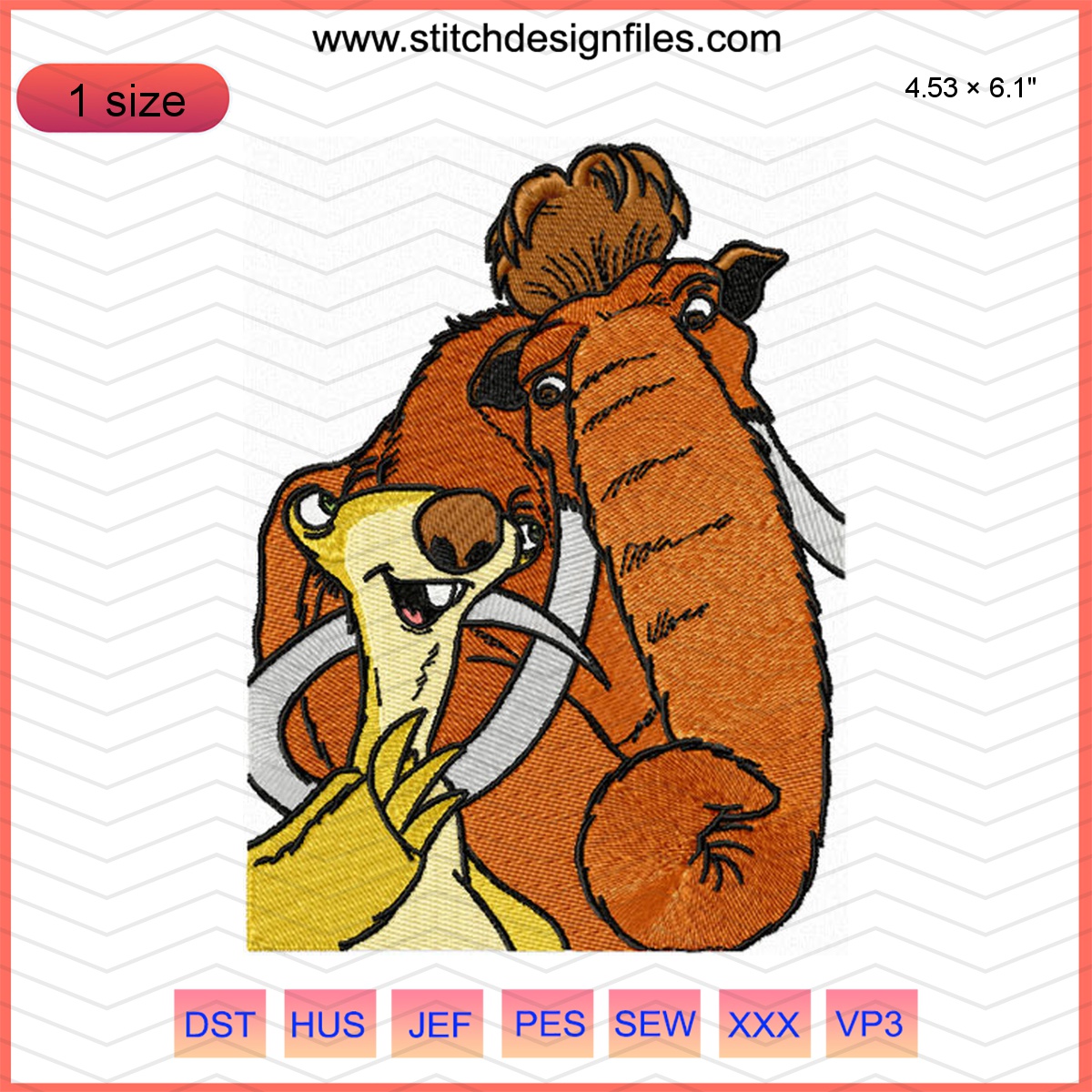 Bring the beloved Ice Age characters Manny and Sid to life with this vibrant embroidery design. Perfect for fans of all ages!