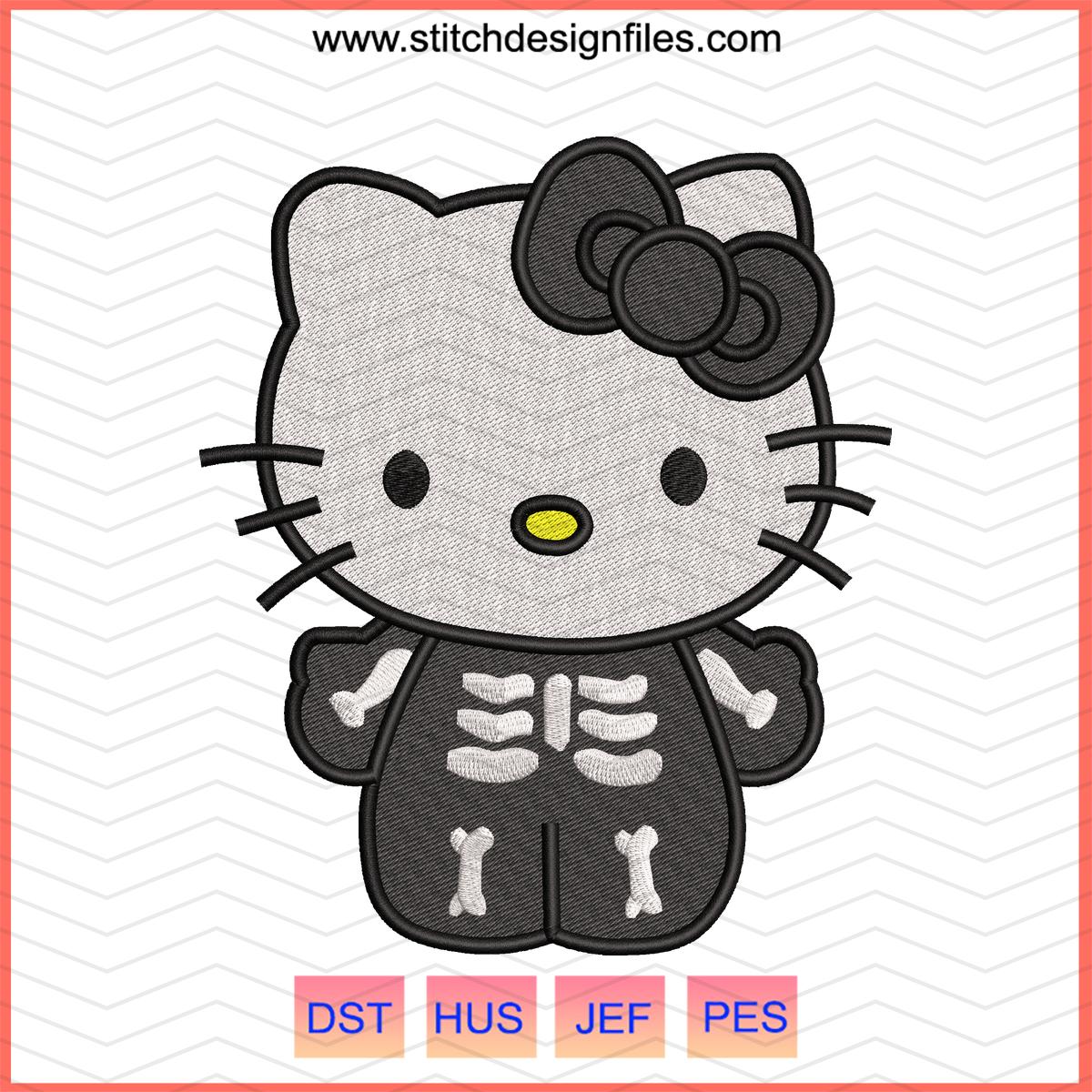 Celebrate Halloween with this adorable Skeleton Hello Kitty embroidery design. This is a digital embroidery file, perfect for creating festive decorations or custom apparel. No physical item will be shipped — just downloadable embroidery files for your machine.